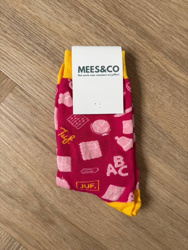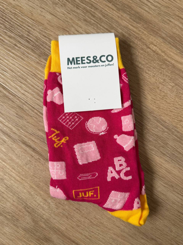 Het laatste paar JUF. sokken roze! Het kaartje is eraf gehaald voor de fotografie van de sokken. Ze zijn nog helemaal nieuw!